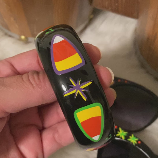 Small/Medium sized, hand-painted heavy hard plastic, smooth bangle.